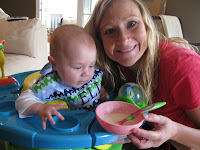 Eli has been such a great blessing. He is happy and cheerful all of the time! He is such a good baby and just goes with the flow all the time. He is now 6 months old and we can't believe it! Time just flies! The doctor told me to start him on rice cereal at 5 months, but I just didn't want to do it, because that meant he was growing up. Its crazy, with Noah I wanted him to do everything ASAP, but with Eli I just don't want him to grow up!